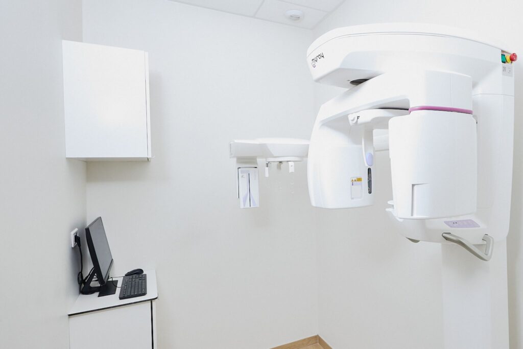 Le diagnostic précis est la première étape d’un traitement réussi. C’est pourquoi le cabinet est équipé de sa propre salle dédiée à l’imagerie 3D, le Cone Beam Computed Tomography, ou plus communément le CBCT.