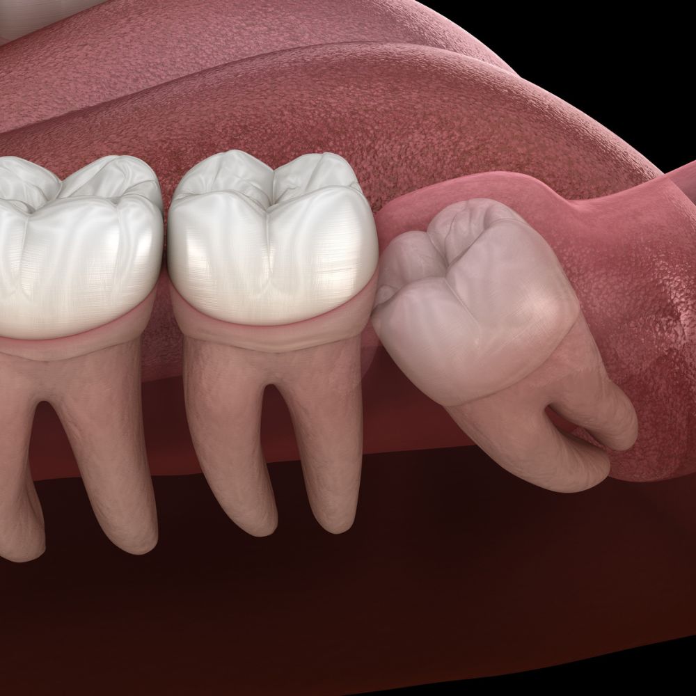 Dents de sagesse visibles provoquant des douleurs ou caries