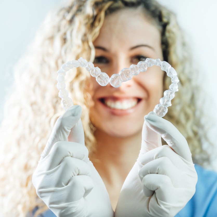 Contrairement aux bagues classiques, les aligneurs transparents sont quasiment invisibles. Ils permettent de corriger des malpositions dentaires (chevauchements, espacements, mauvais alignements) tout en restant esthétiques et confortables. C’est une solution idéale pour les patients qui souhaitent améliorer leur sourire sans que leur traitement ne soit perceptible.