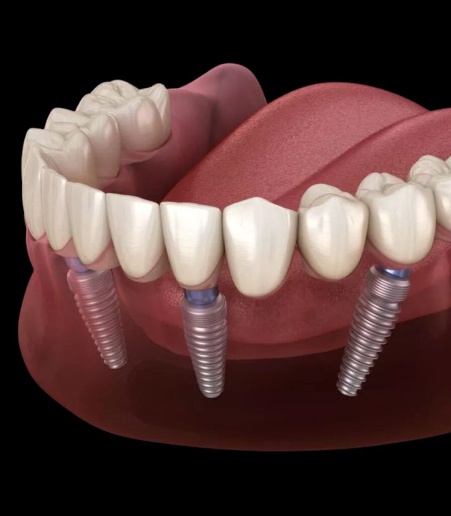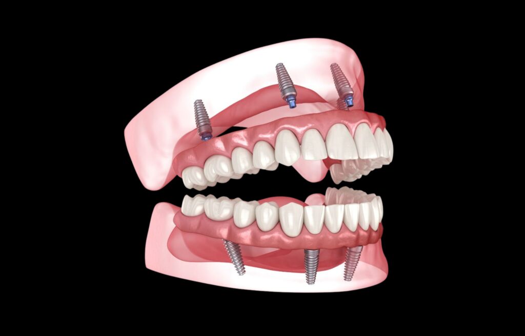 Cette technique repose sur 4 ou 6 implants stratégiquement positionnés dans l’os afin de soutenir une prothèse complète fixe.